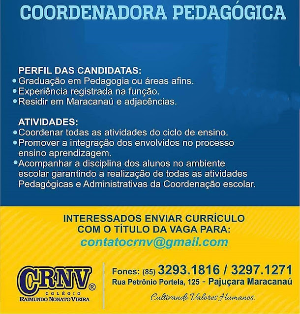 C.RH, Sua pagina de empregabilidade e divulgação de vagas divulga as vagas a seguir: