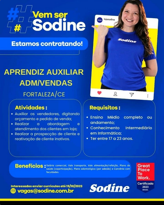 Vagas de segunda-feira 25/09/2023 a sexta-feira 29/09/2023
