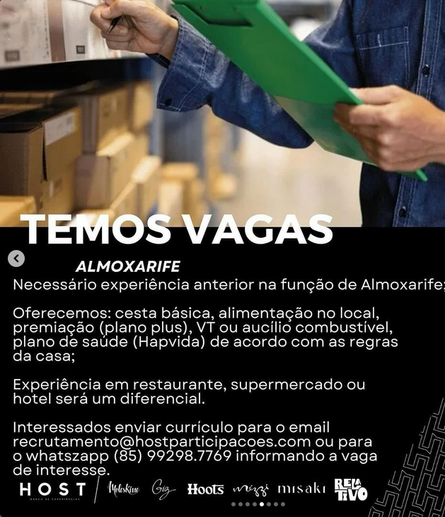 Vagas de segunda-feira 17/06/2024 a sexta-feira 21/06/2024